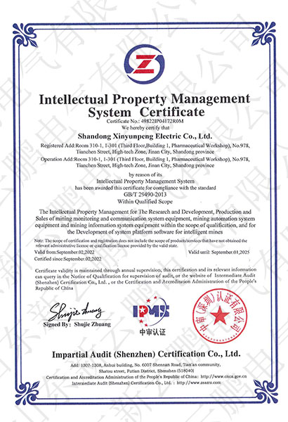 知識(shí)產(chǎn)權(quán)管理體系證書(shū)英文版